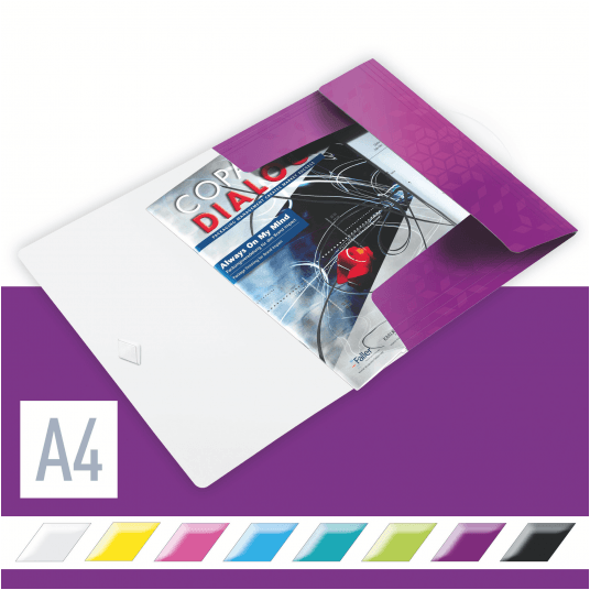 Wysokiej jakości teczka z polipropylenu w żywych kolorach WOW z dwubarwnym wykończeniem.