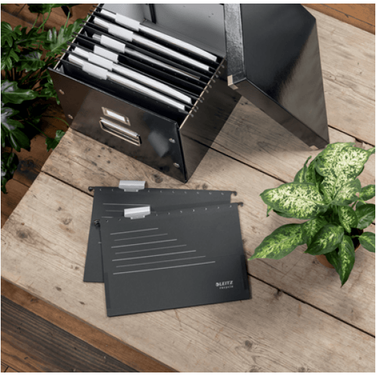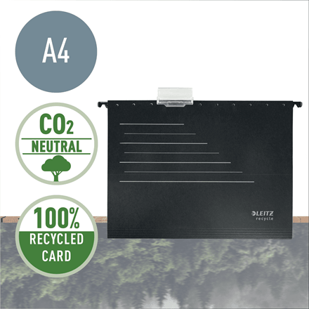 Teczka zawieszana Leitz Alpha Recycle zapewnia łatwy dostęp do dokumentów oraz maksymalne wykorzystanie miejsce do archiwizacji dzięki możliwości pionowego zawieszania dokumentów.