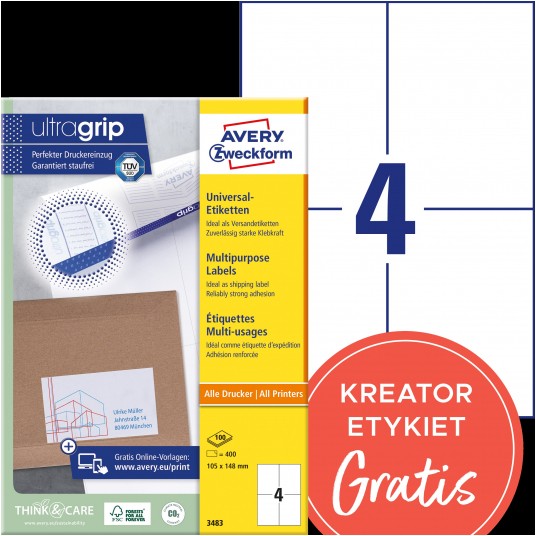 Etykiety uniwersalne Avery Zweckform Ultragrip 105