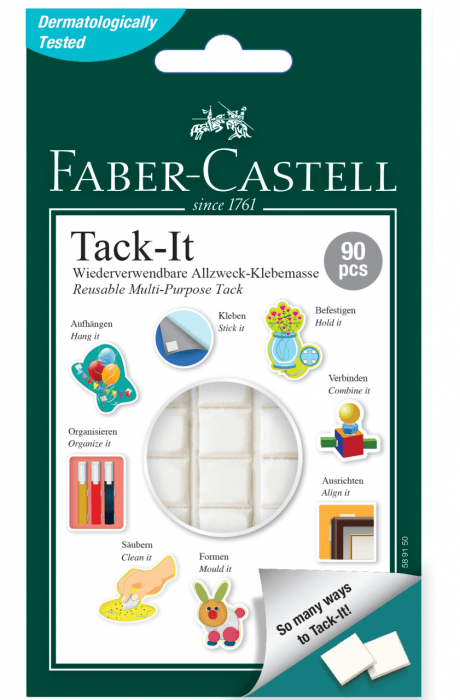 - masa mocująca odpowiednia do różnych celów: do użytku w domu, szkole, pracy i projektach kreatywnych - w postaci łatwo odklejanych prostokątów - odpowiednia do tymczasowego nalepienia informacji, plakatów, planów itp. - w kolorze białym - waga: 50 g