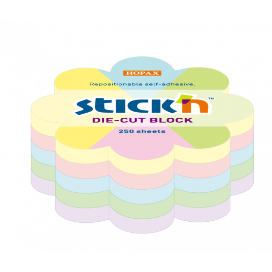 - notes samoprzylepny kostka w kształcie kwiatka o wymiarach 67 x 67 mm