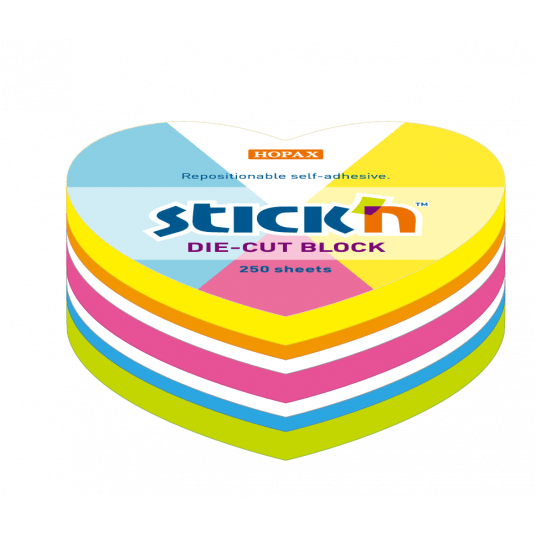 - notes samoprzylepny kostka w kształcie serca o wymiarach 64 x 67 mm
