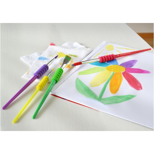 - unikalna, miękka i antypoślizgowa strefa uchwytu - doskonałe zarówno do malowania detali jak i pokrywania większych powierzchni - wysokiej jakości, miękkie włosie - 4 różne kolory pastelowe i rozmiary (okrągły 4, 8 i 12, płaski 10)