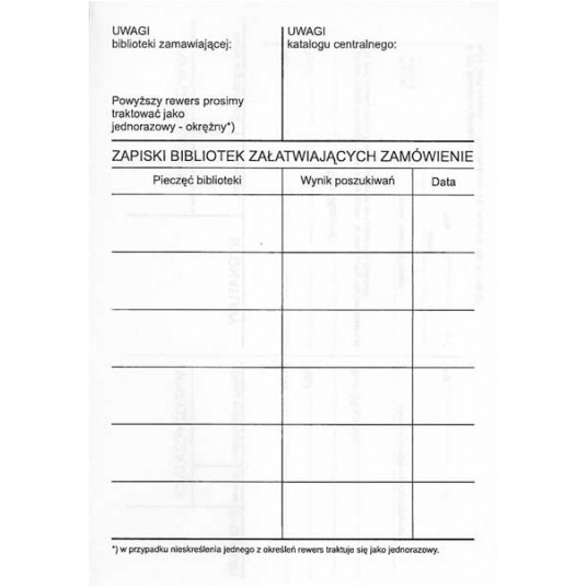 Rewers wypożyczeń B181 (bloczek) Typograf A6