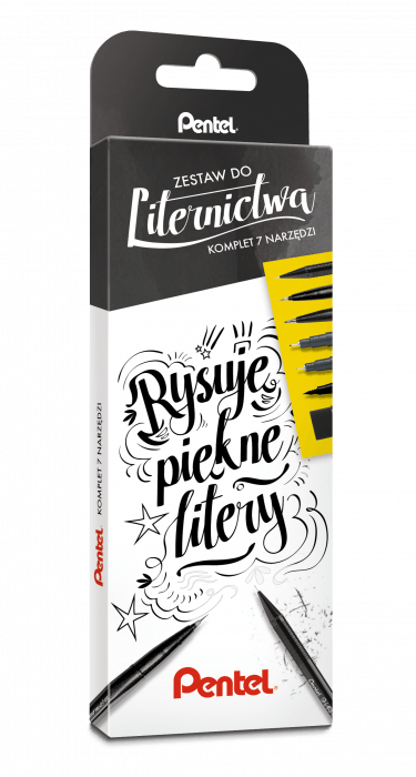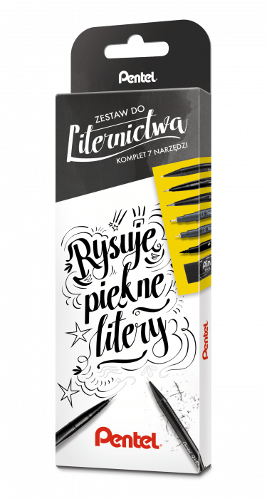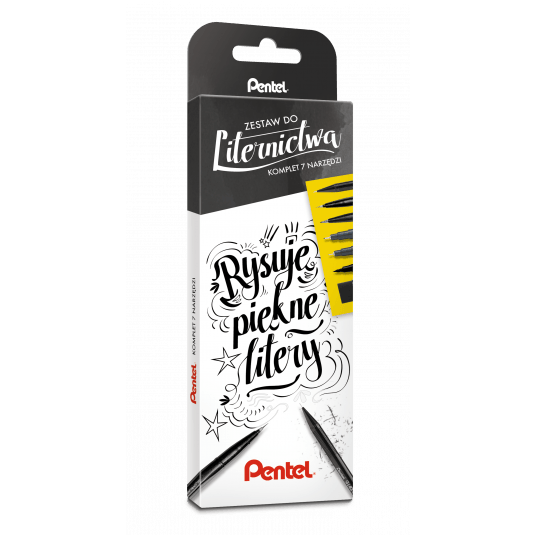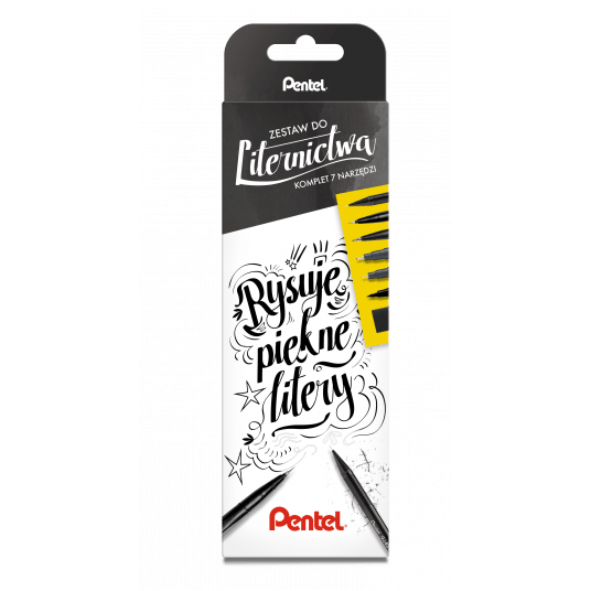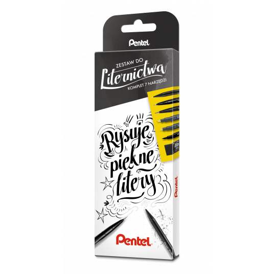 Skład zestawu: A125 - ołówek automatyczny 0,5 mm (HB), ZEAH06 - czarna gumka ołówkowa, SES15C - pisak pędzelkowy Brush Sign Pen, SESF30 - pędzelek Brush Sign Pen Artist, XSFW34A - dwustronny pędzelek / pisak, S20P - dwa precyzyjne cienkopisy POINTLINER o grubości 0,05 i 0,5 mm.