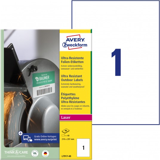 • Produkcja etykiet Avery Zweckform jest neutralna pod względem emisji CO2 (certyfikat Focus Future) i zgodna ze standardem ISO14001, który pomaga zminimalizować negatywne czynniki oddziałujące na środowisko naturalne.