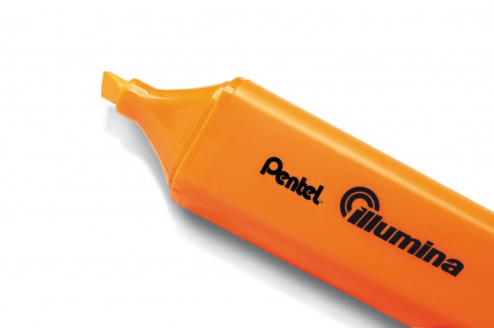 Zakreślacze z wyjątkowo trwałą i odporną na dociskanie do powierzchni końcówką w kolorze pomarańczowym.