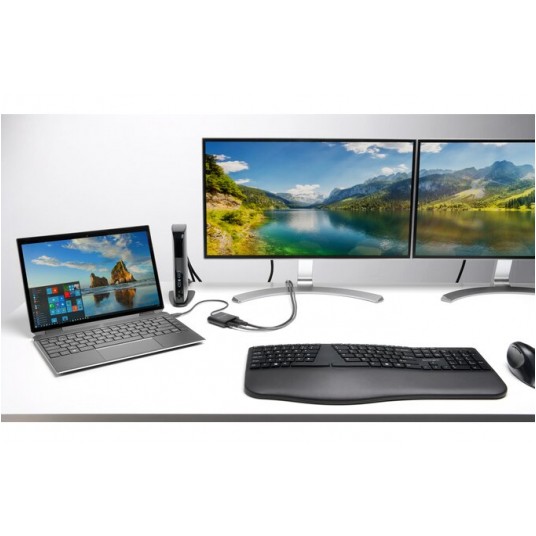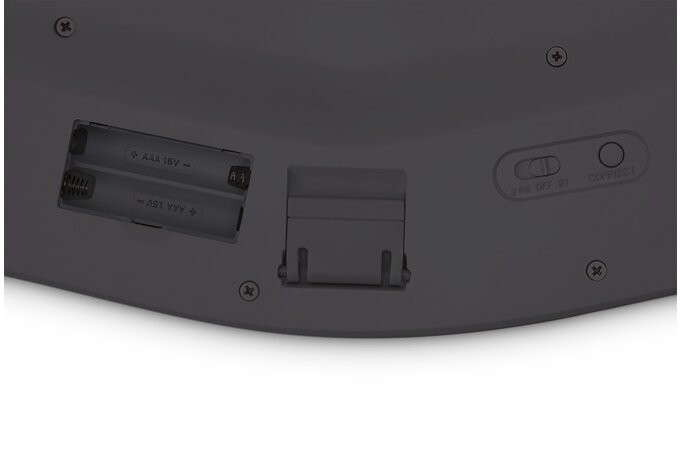 - podzielona i wyprofilowana pod odpowiednim kątem powierzchnia klawiatury z regulowanym odchyleniem umożliwia ułożenie rąk, przedramienia i nadgarstków w naturalnej pozycji, zapewniając im komfort