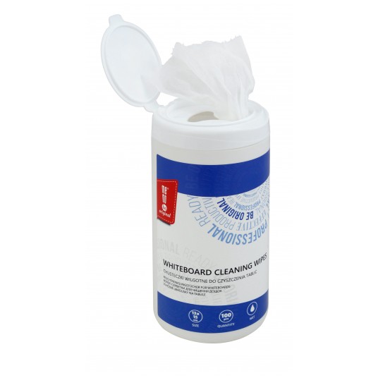Chusteczki MemoBe nawilżone płynem o delikatnym zapachu. - antystatyczne do usuwania śladów markerów suchościeralnych z tablic z powierzchnią lakierowaną - trwały papierowy materiał zbiera zanieczyszczenia bez pozostawiania smug - wygodna plastikowa tuba z zamknięciem pełni funkcję dyspensera - tuba o wym. h17,3 x f8,5 cm - 100 sztuk chusteczek o wym. 15x13 cm - do codziennego użytku