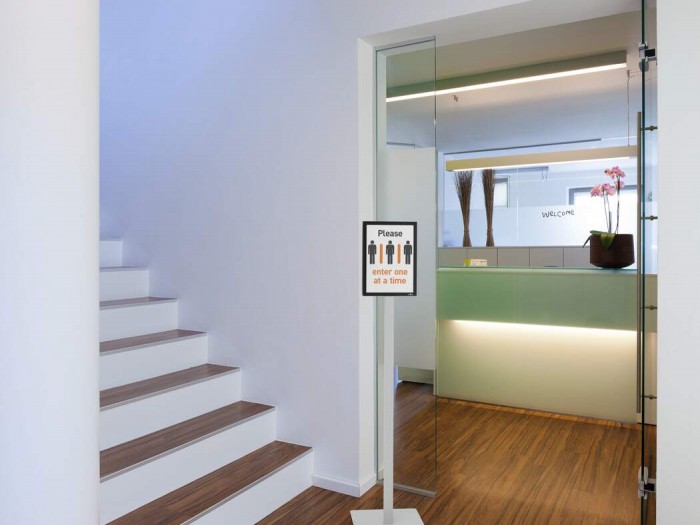 - dwustronny stojak podłogowy nadaje się zarówno do prezentacji informacji, jak również jako system oszyldowania wskazujący np. drogę