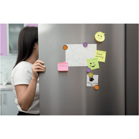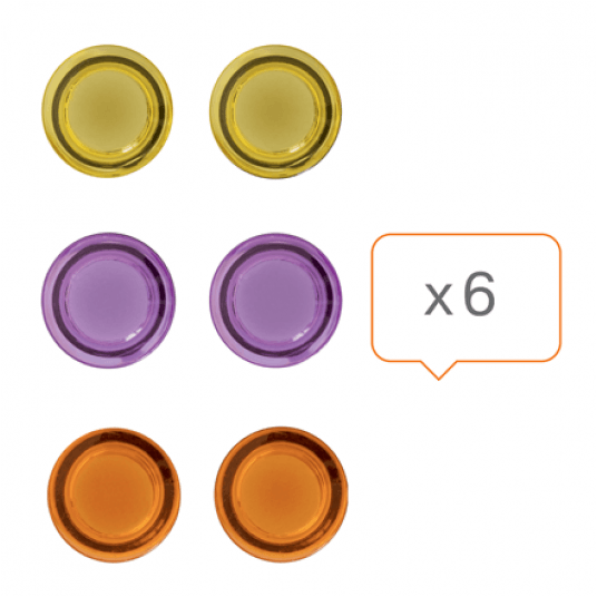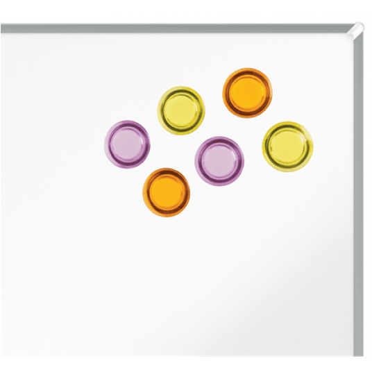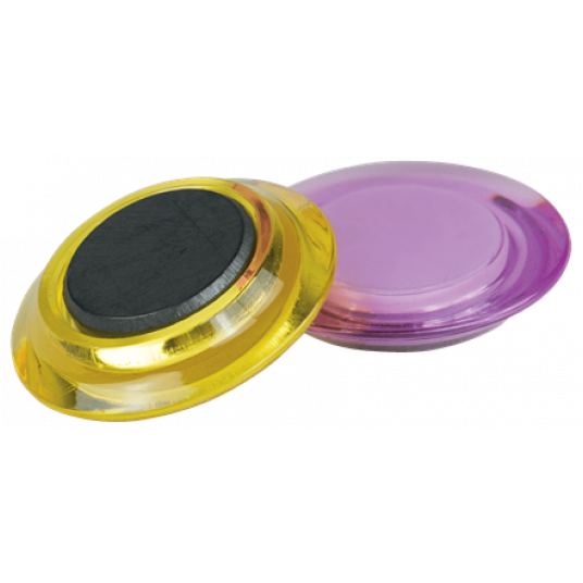 Różnokolorowe magnesy do tablic suchościeralnych, przeznaczone do estetycznego i niezawodnego zawieszania notatek i informacji na tablicach magnetycznych. Mogą być także używane jako magnesy na lodówkę. Średnica 30 mm.