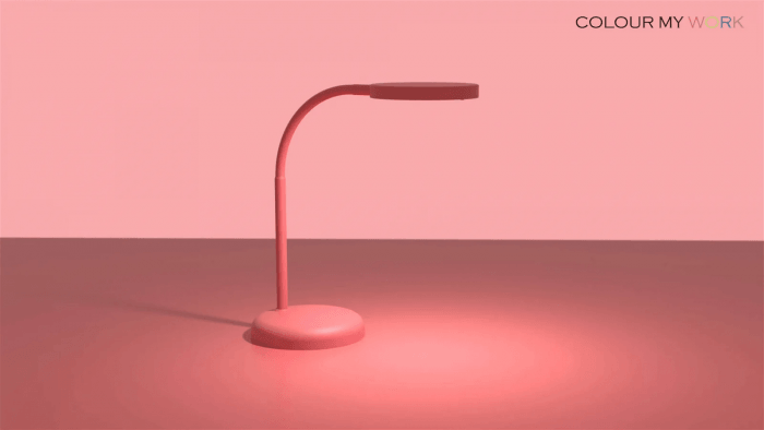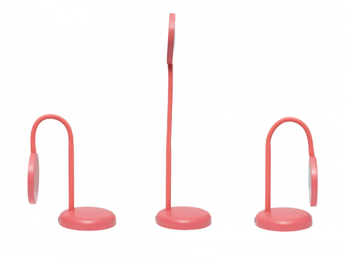 Kompaktowa lampa w kolorze różowym dla zapewnienia oszczędności miejsca.