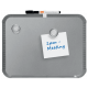 Ultracienkie, magnetyczne tabliczki z zaokrąglonymi narożnikami. Przeznaczone do robienia notatek czy pozostawiania wiadomości. W zestawie z suchościeralnym markerem, gąbką i dwoma magnesami oraz paskami taśmy klejącej do montażu na stałe i taśmą magnetyczną do montażu na lodówce.