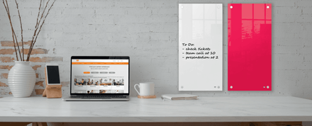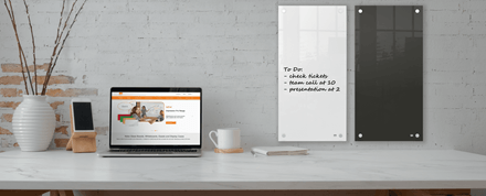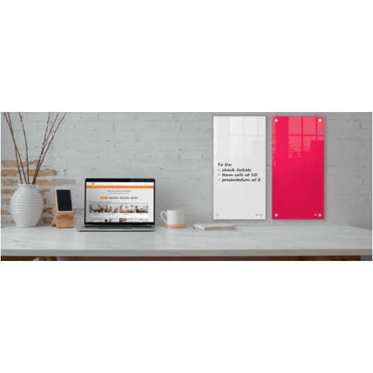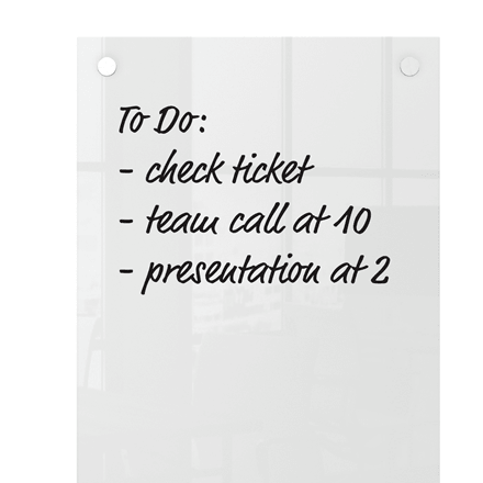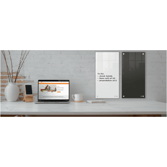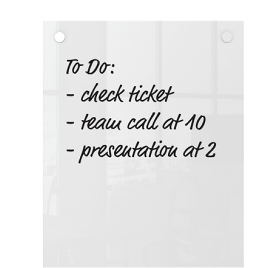 Podłużna powierzchnia suchościeralna o pionowej orientacji to idealne narzędzie do sporządzania notatek i różnego rodzaju list. Stylowe mocowania do ściany w narożnikach zapewniają trwały i tabilny montaż.
