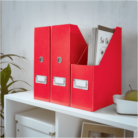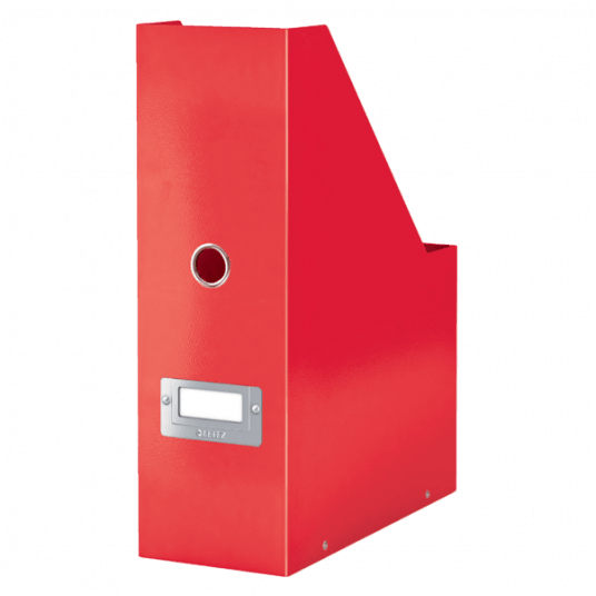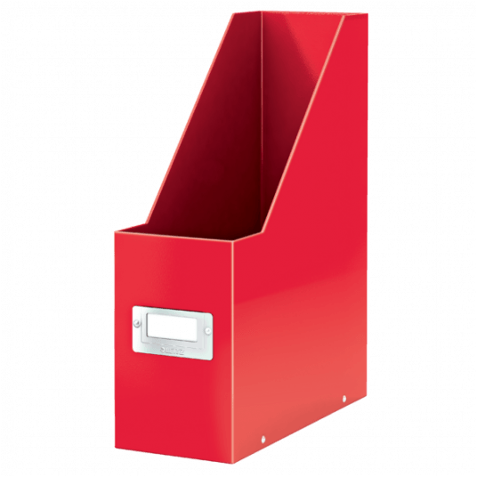 Przykuwający wzrok, stylowy pojemnik na czasopisma i katalogi.