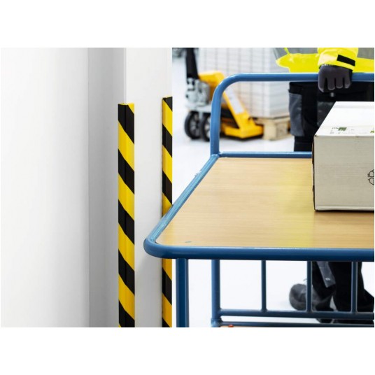 - oznacza miejsca niebezpieczne, niweluje skutki uderzenia i zapobiega uszkodzeniom pojazdów i wózków transportowych.