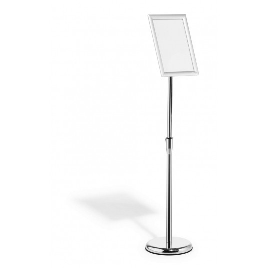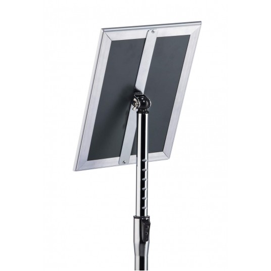 Stojak informacyjny do szybkiego montażu z wytrzymałą składaną ramą aluminiową DIN A4, anodowaną na srebrno.