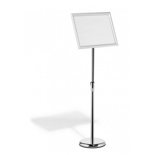 Stojak informacyjny do szybkiego montażu z wytrzymałą składaną ramą aluminiową DIN A3, anodowaną na srebrno.