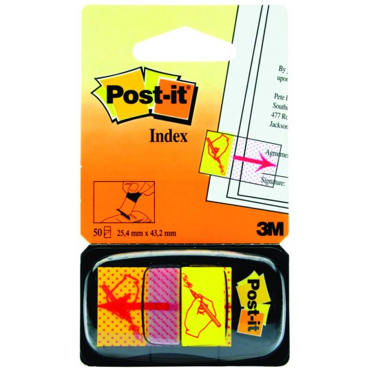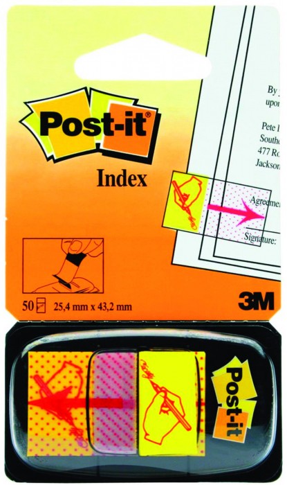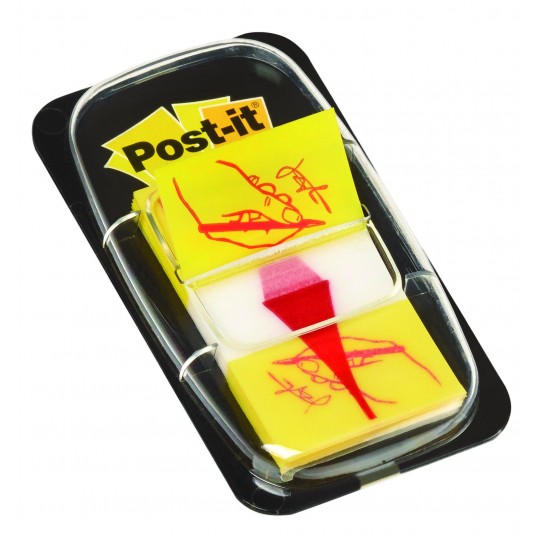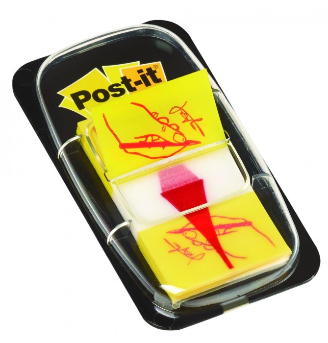 Zakładki indeksujące z nadrukiem ręki i ołówka.