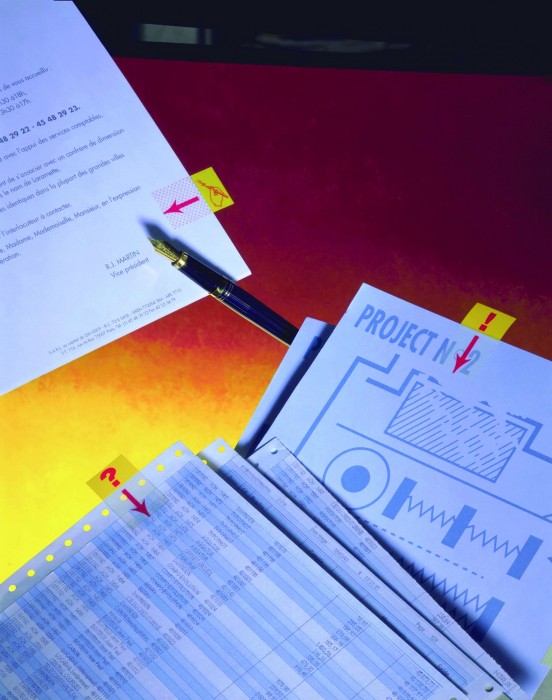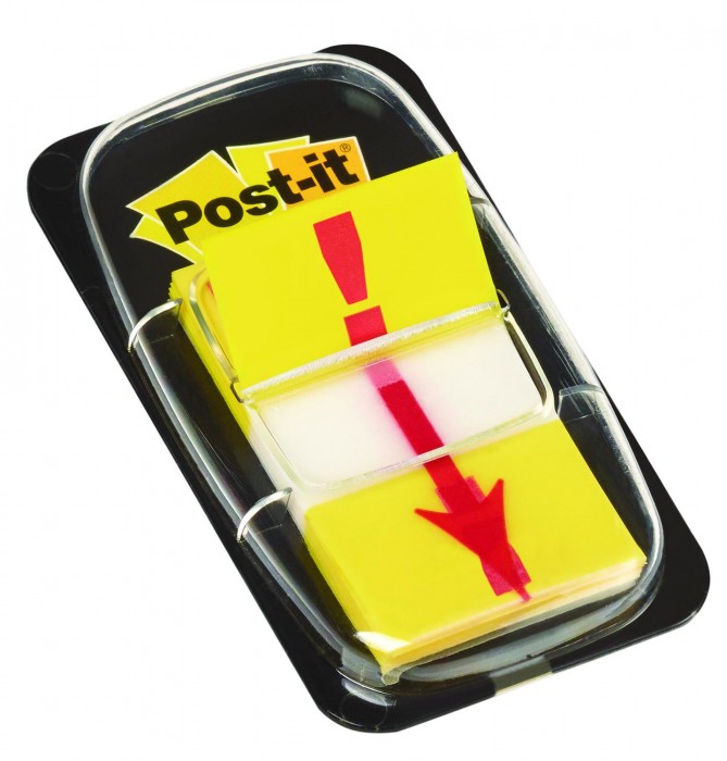 Zakładki indeksujące z nadrukiem wykrzyknika.
