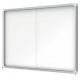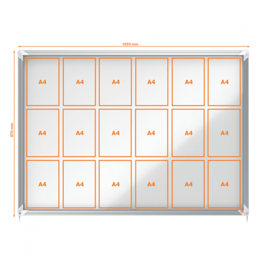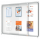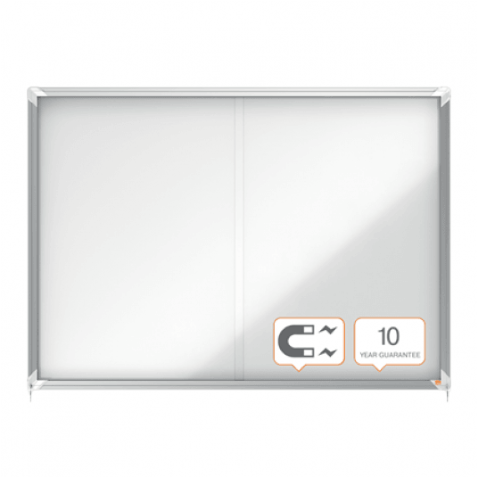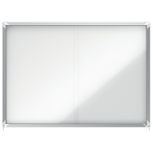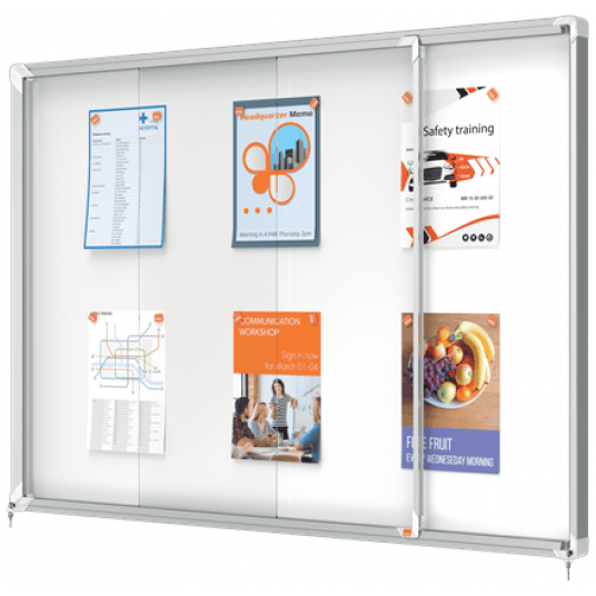 Zamykana gablota informacyjna z białą magnetyczną powierzchnią i przesuwanymi drzwiczkami z wytrzymałego, bezpiecznego szkła o grubości 4 mm. Zamieszczone w niej informacje będą bezpieczne i suche bez względu na panujące warunki atmosferyczne. Odpowiednia dla dokumentów w formatach będących wielokrotnością arkuszy A4.