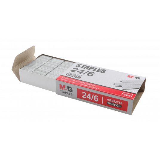 Zszywki miedziowane i galwanizowane 24/6, 1000 szt. w pudełku.