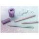 - Unikalny design o metalicznym wykończeniu z atrakcyjnymi błyszczącymi kropkami został zaprojektowany tak, aby dodać blasku biurkowej codzienności. Z brokatową końcówką. Ergonomiczny trójkątny kształt zapewnia wysoki komfort użytkowania i niemęczące, wygodne pisanie i szkicowanie. Miękki i łatwy do temperowania. Grafit o stopniu twardości B jest wysoko odporny na pękanie, dzięki bezpiecznemu procesowi wiązania (SV). Wykonany z certyfikowanego drewna pochodzącego ze zrównoważonego i odpowiedzialnie zarządzanego leśnictwa. Powierzchnia pokryta lakierem na bazie wody – bezpiecznym dla środowiska i zdrowia dzieci. Emisja CO2 spowodowana procesem produkcyjnym tego produktu jest neutralizowana przez certyfikowane projekty