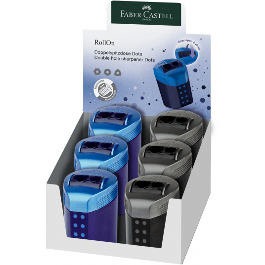 - opatentowany system obrotowy zamykania/otwierania temperówki zapewnia wygodne używanie '- wysokiej jakości temperówka podwójna z pojemnikiem na ostrużyny w celu łatwego i czystego temperowania '- obudowa w atrakcyjnych metalicznych kolorach z błyszczącymi punktami (Sparkle) '- śrubka bezpieczeństwa do klasycznych i grubych (typu JUMBO) kredek oraz ołówków '- wysokiej klasy ostrze wyprodukowane w Niemczech '- ekologiczne rozwiązanie: dostępne zapasowe ostrza