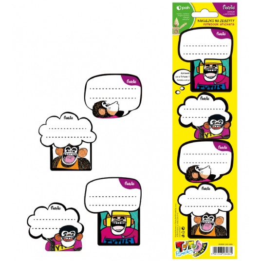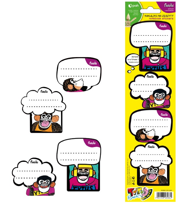– 4 naklejki na jednym listku '– każda z miejscem na wpis i postacią Tytusa '– opak. 20 listków
