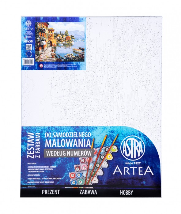 Obraz malowany po numerach o wymiarach 40×50 cm przedstawiający malownicze miasteczko położone na południowym wybrzeżu Włoch.