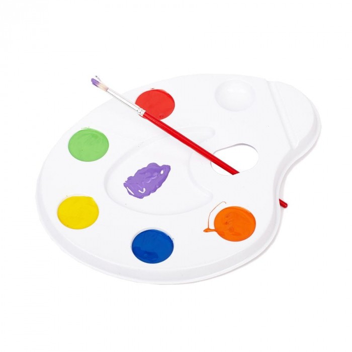 Paletka do mieszania farb, stworzona z tworzywa sztucznego.
