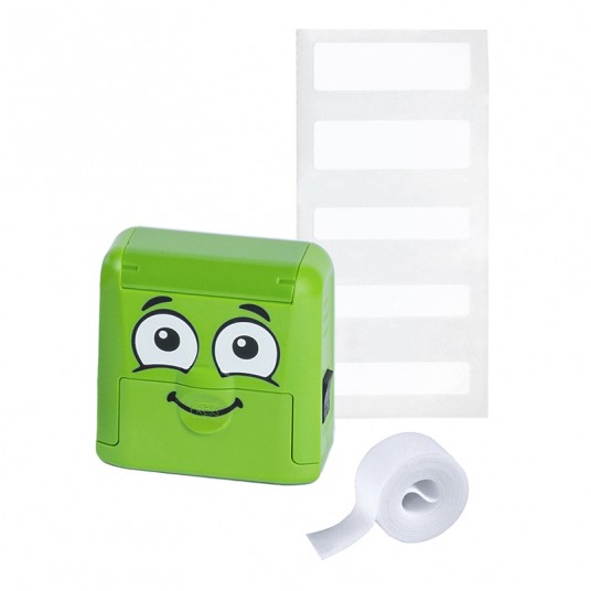 W komplecie znajduje się również wodoodporna tasiemka do naprasowania dla ciemnych tkanin oraz specjalne,odporne na mycie w zmywarce etykiety na każdą powierzchnię.