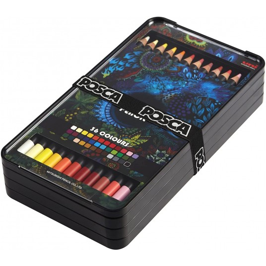 Zestaw 36 kredek w wygodnym, plastikowym pudełku.