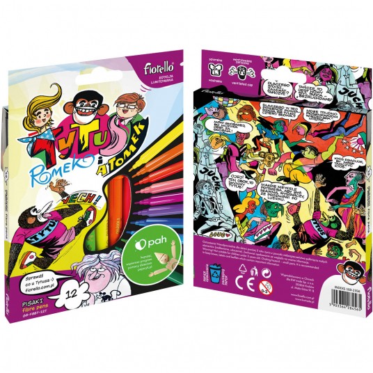 Pisaki szkolne w intensywnych kolorach '- końcówka wyposażona w blokadę, nie ma mozliwości wcisnięcia jej do środka '- bezpieczna wentylowana zatyczka umożliwia oddychanie w przypadku połknięcia '- wyrazisty tusz na bazie wody '- grubość linii 1 mm '- zestaw 12 kolorów